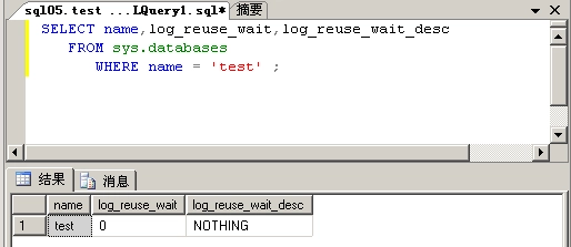 我们可以根据结果中输出的log_reuse_wait 和 log_reuse_wait_desc 的值来查找原因
