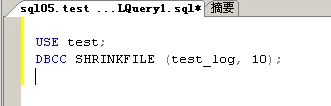 下图是把以下示例将 test用户数据库中名为test_log的数据文件的大小收缩到 10 MB。