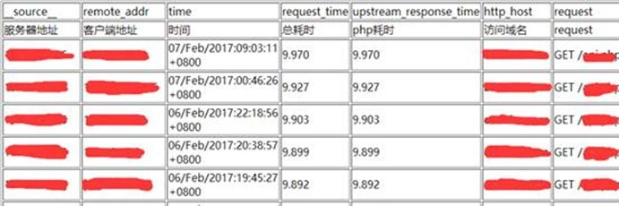 比如我这里刚刚统计到一些处理时间将近10秒的URL,通过排查发现都是因为调用了第三方的API,第三方的API接口耗时过长导致,猪一样的队友啊。