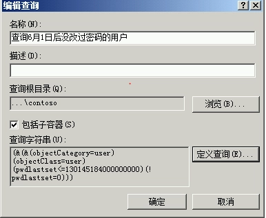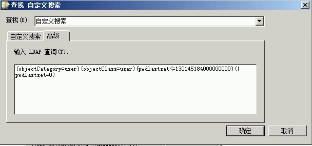 那么我们如果有一些特殊的查询要做要怎么来实现呢。这里我们把《查询某个时间点后没有改过密码的用户》来做为案例来简单说明一下如何使用LDAP命令在AD控制台上来建立查询。